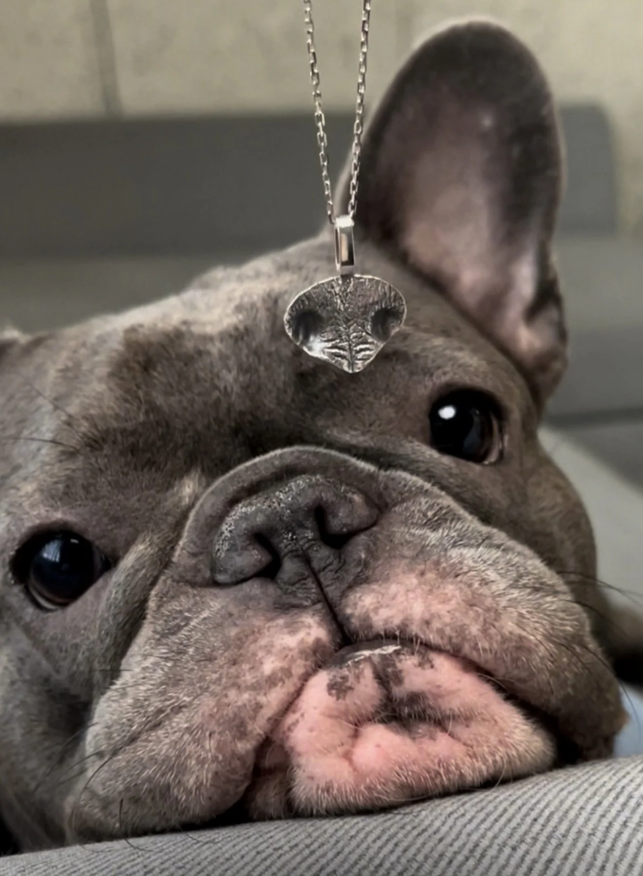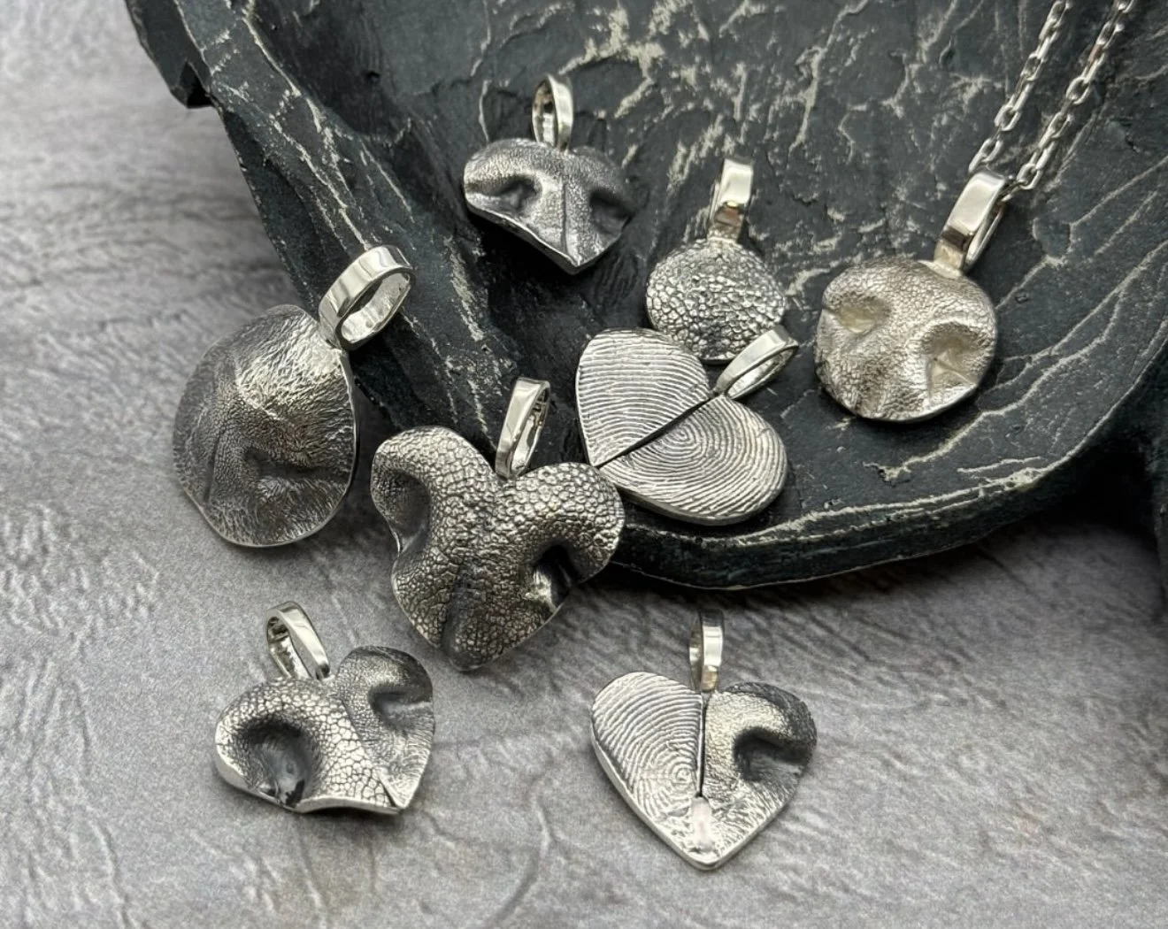 Each piece of jewelry is handcrafted from your pet’s unique nose or paw print — no two are ever the same in the whole world. We create our pieces from genuine 925 sterling silver with optional oxidized finishing for a deeper, vintage look, gold-plated silver or gold.